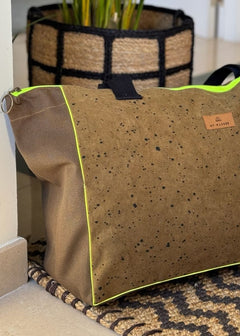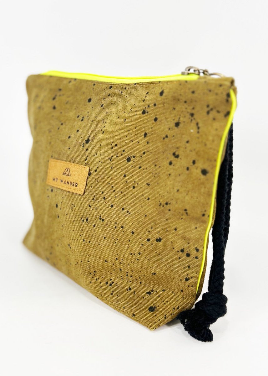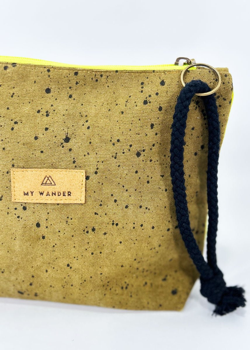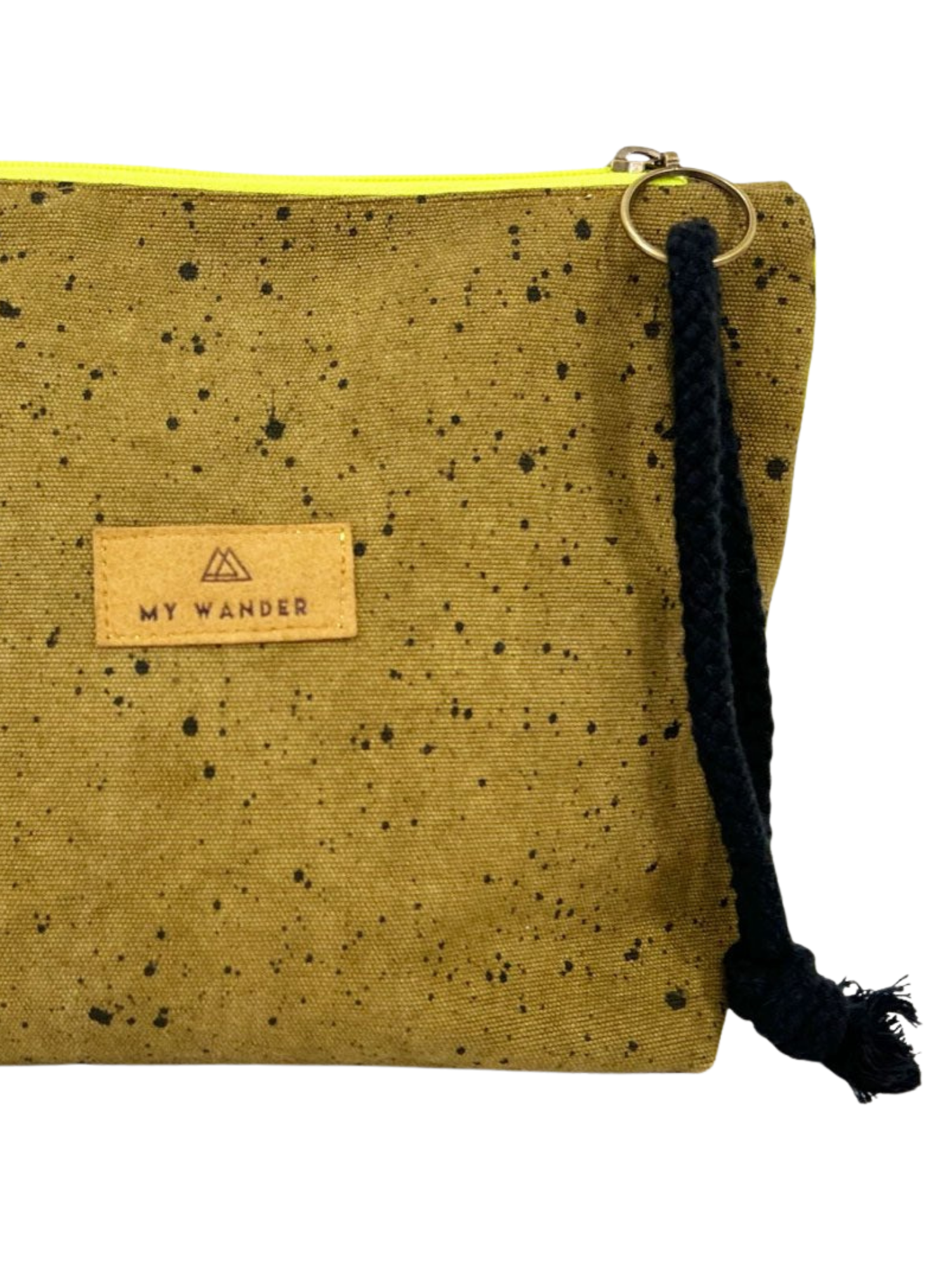 Grâce à une technique de peinture spontanée sur nos toiles durables, pré-teintes et lavées à la main pour un effet vieilli, nous lançons un nouveau tissu qui transforme nos sacs en toiles colorées, ornées de magnifiques gouttes de couleur intense. Ce tissu 100 % espagnol, unique en son genre, et son coup de pinceau artistique sont uniques. Chaque goutte est différente et confère un caractère original et exclusif. De plus, il s'agit d'une édition limitée. Chaque trousse de toilette est unique. Quel sera le vôtre ?