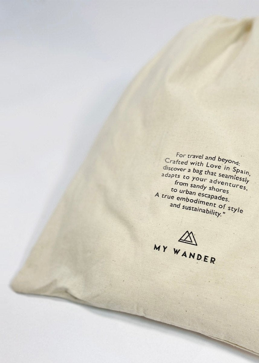En guise de nouveauté, nous avons créé un sac en coton exclusif, qui accompagne chaque produit. My Wander. Ce sac n’est pas seulement un contenant, c’est une déclaration d’intention. Utilisez-le encore et encore, non seulement pour transporter ou stocker vos nouveaux trésors, mais aussi dans votre vie de tous les jours. En réutilisant ce sac, vous contribuez activement à réduire les déchets plastiques et à préserver nos ressources naturelles.