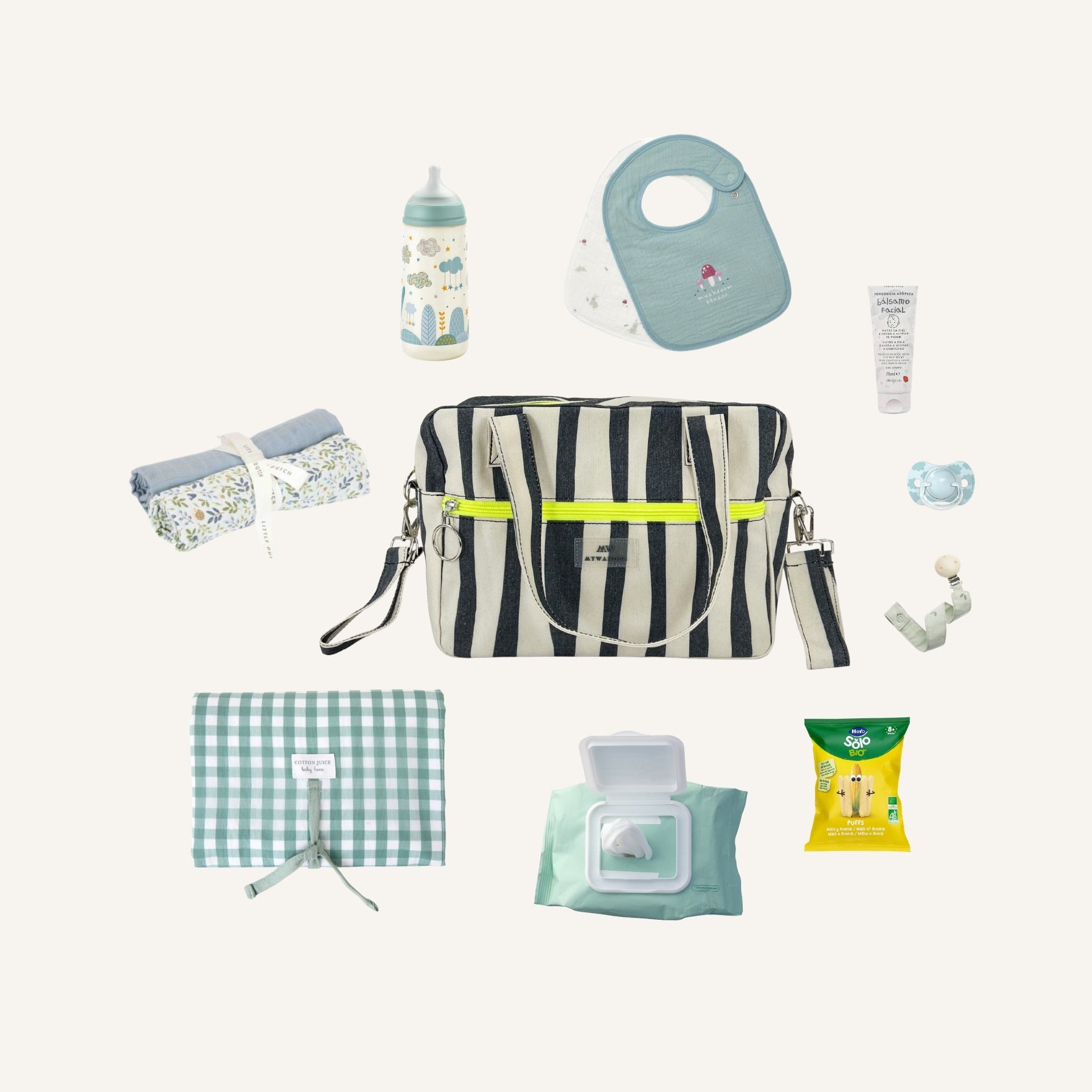 - Mudas y bolsita para la ropa sucia: Cambio completo por si se ensucia la ropa del bebé.