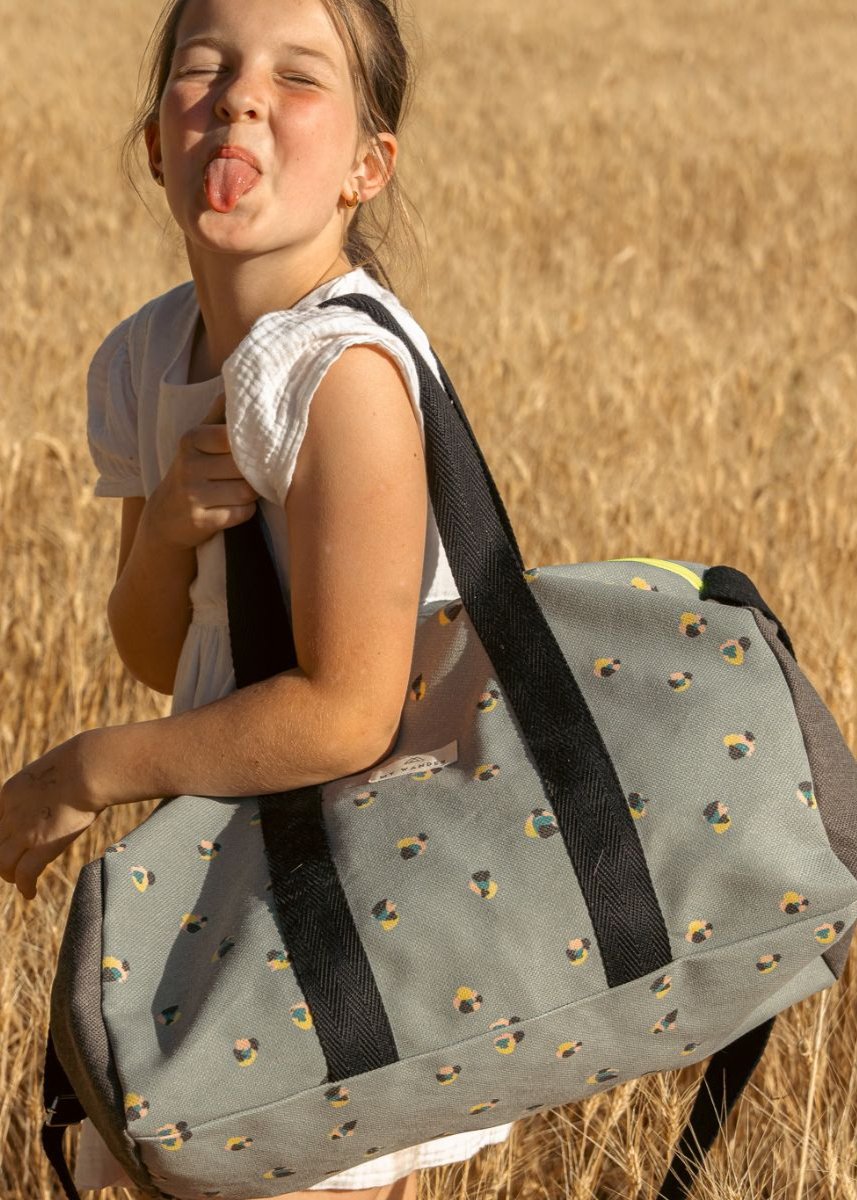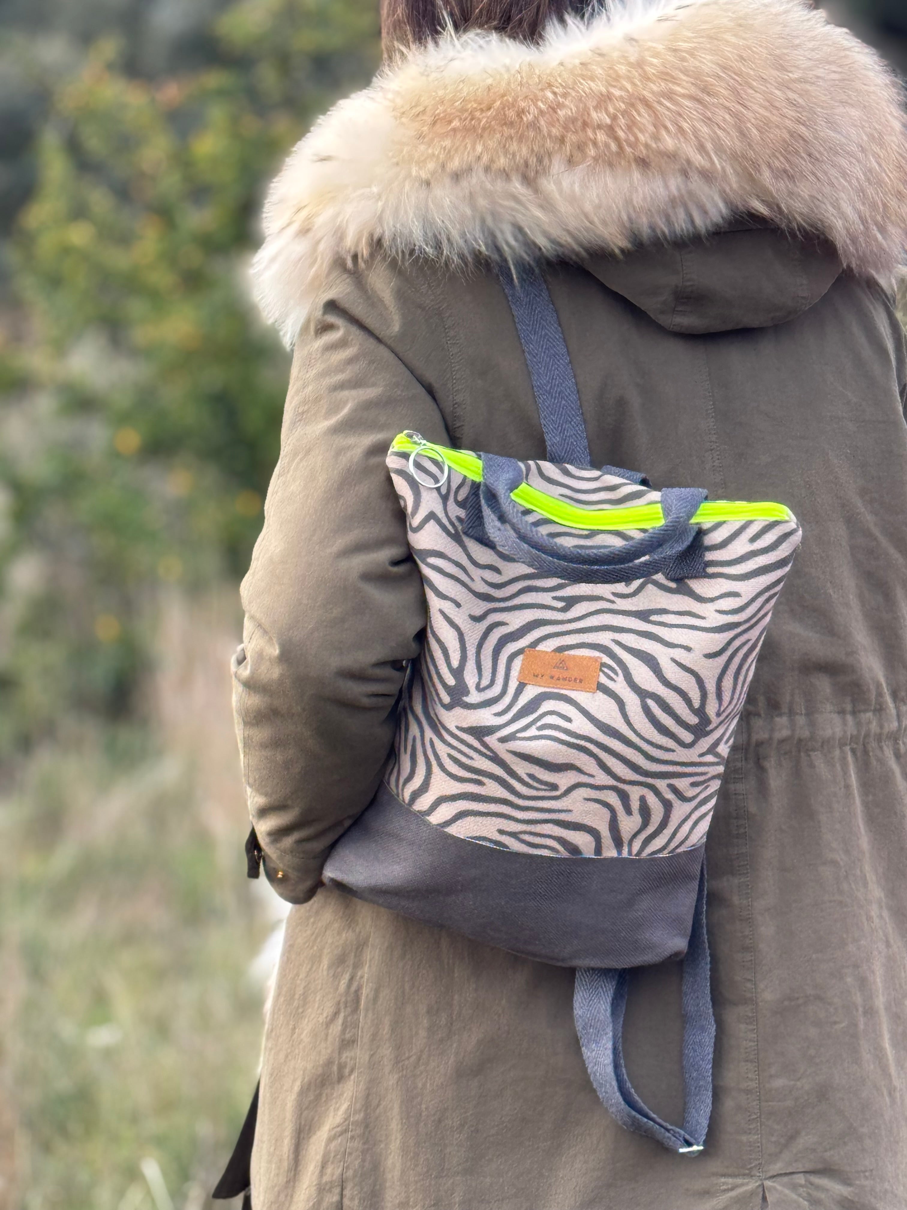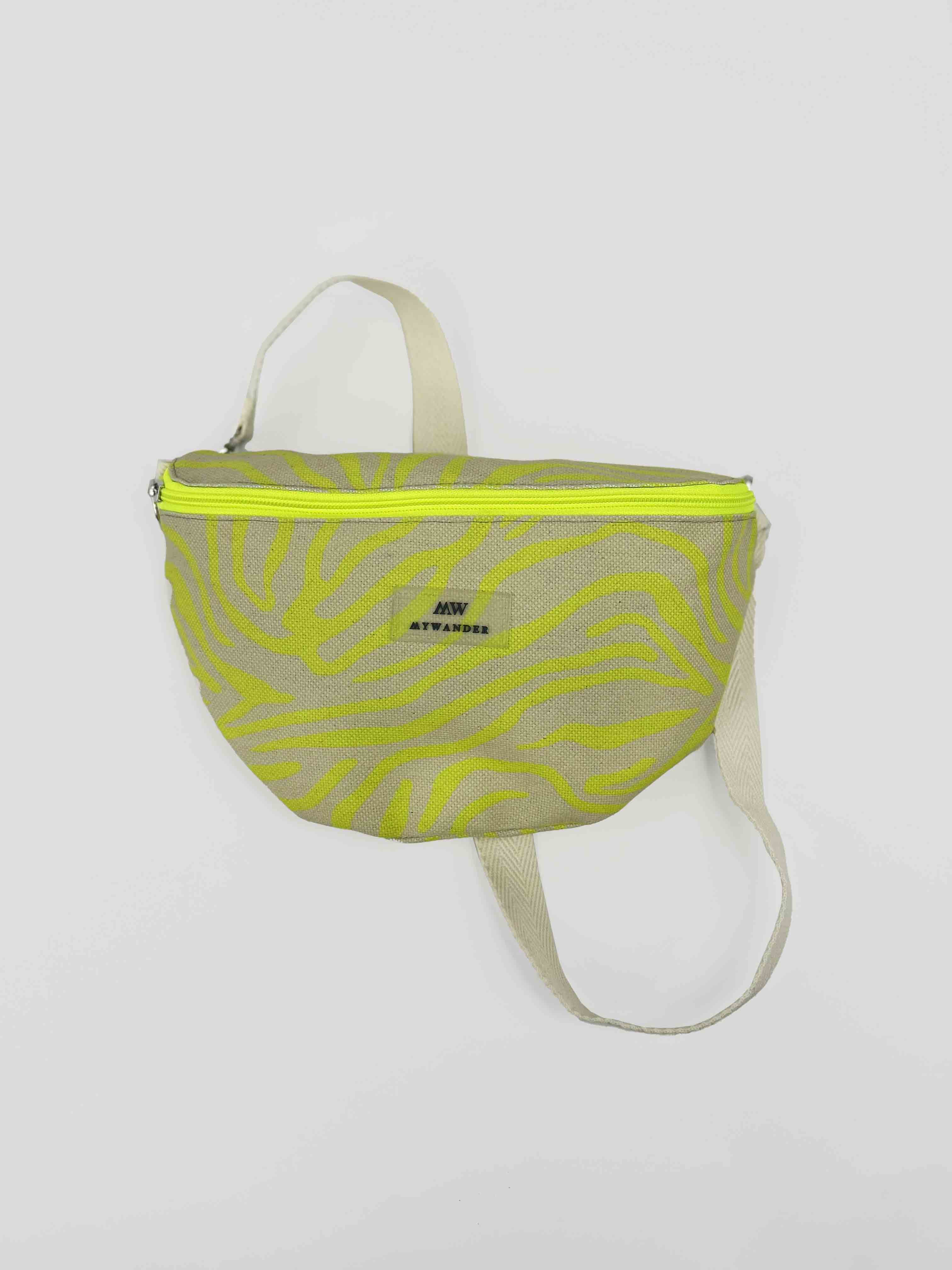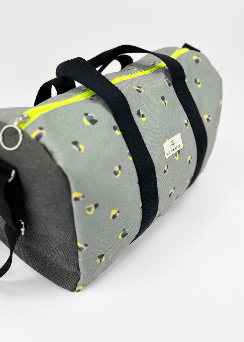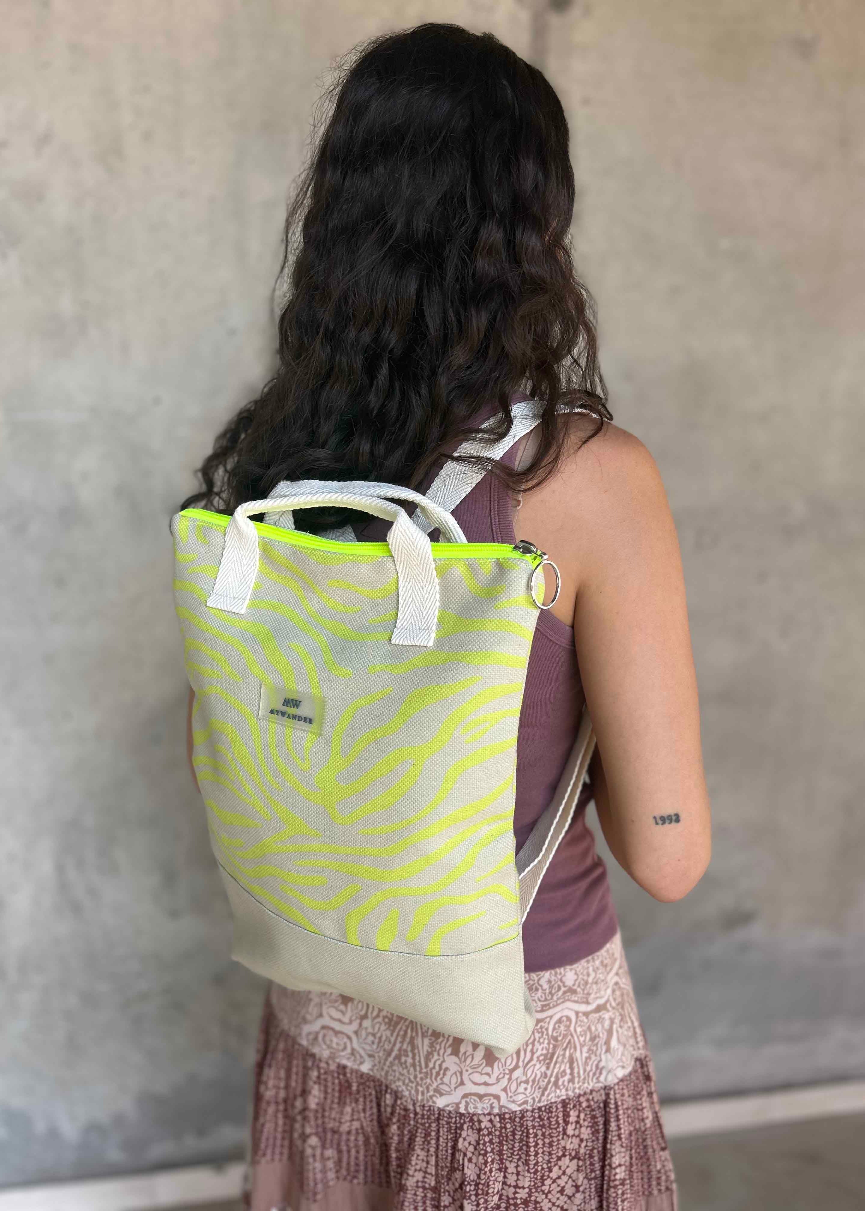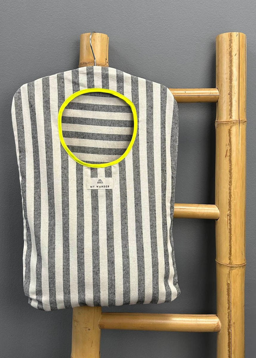 Escolhemos este tecido rústico nas cores branco e bege com zíper amarelo para que combine com tudo e possa ser utilizado em qualquer tipo de plano. Desde uma viagem até modelos para uso diário.