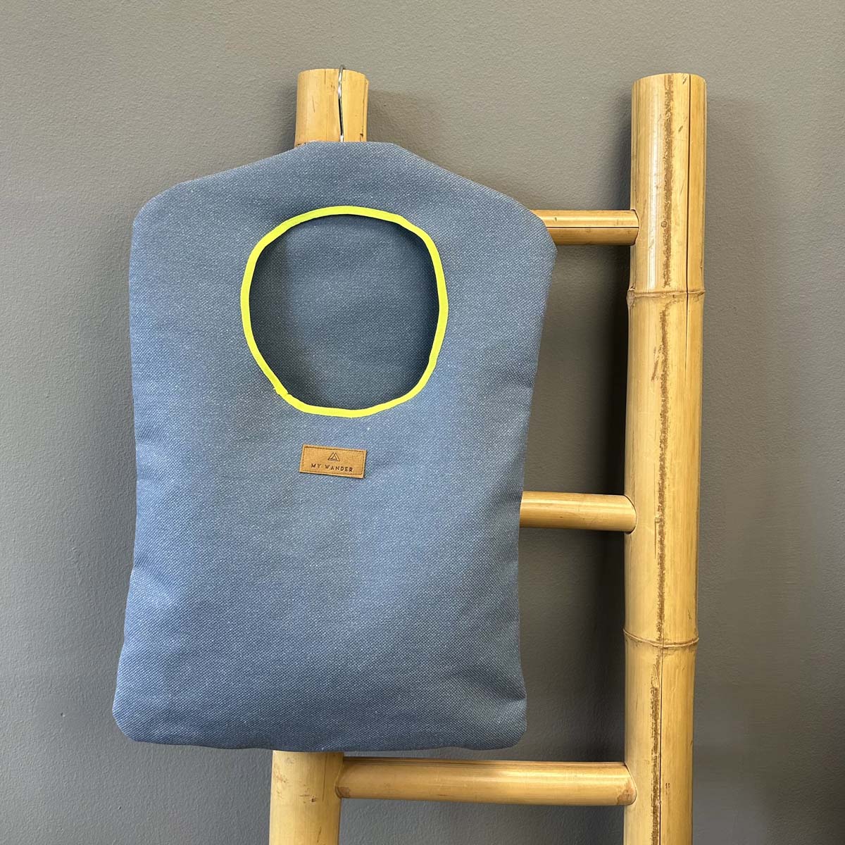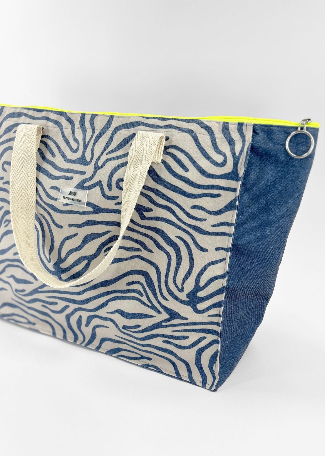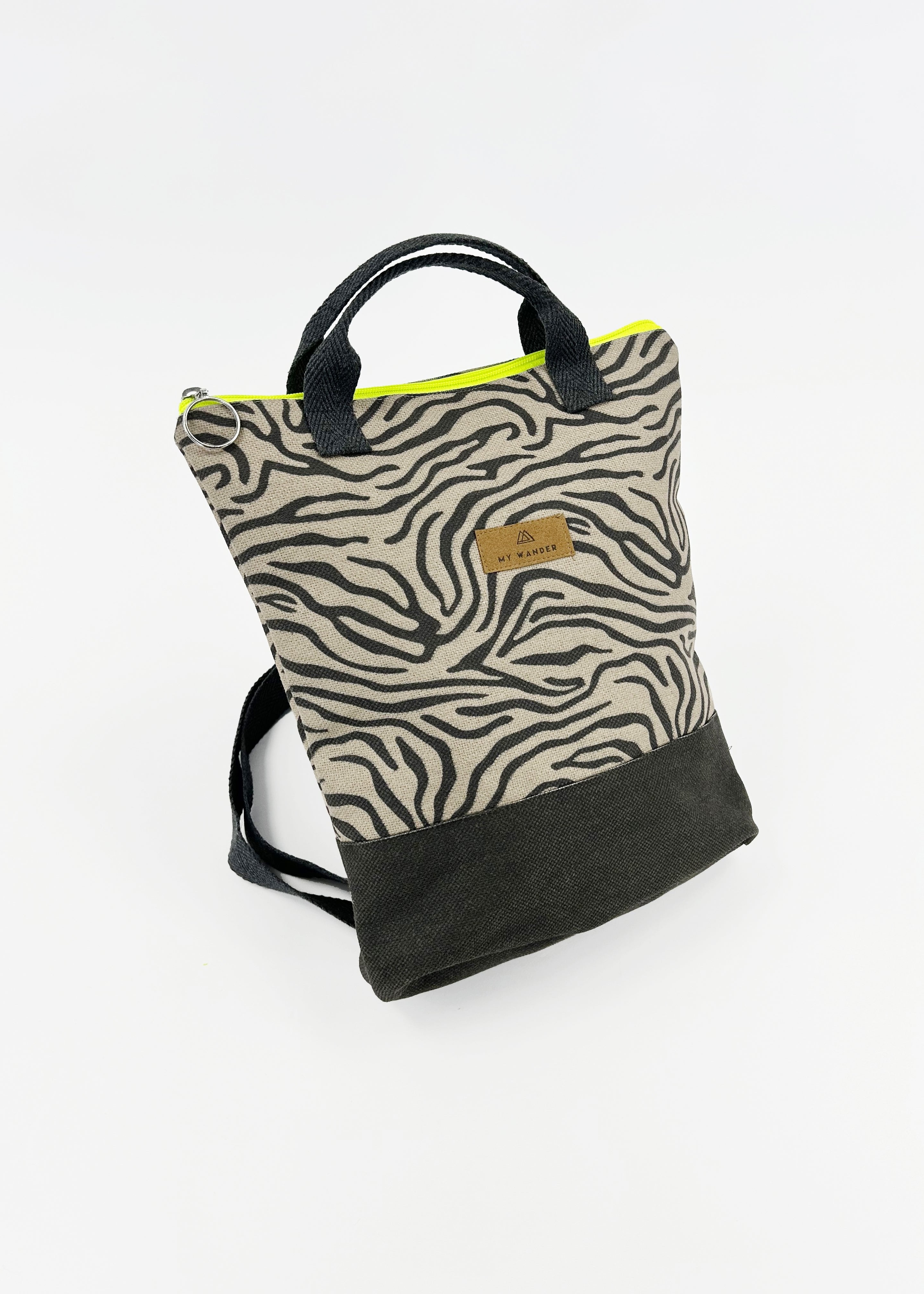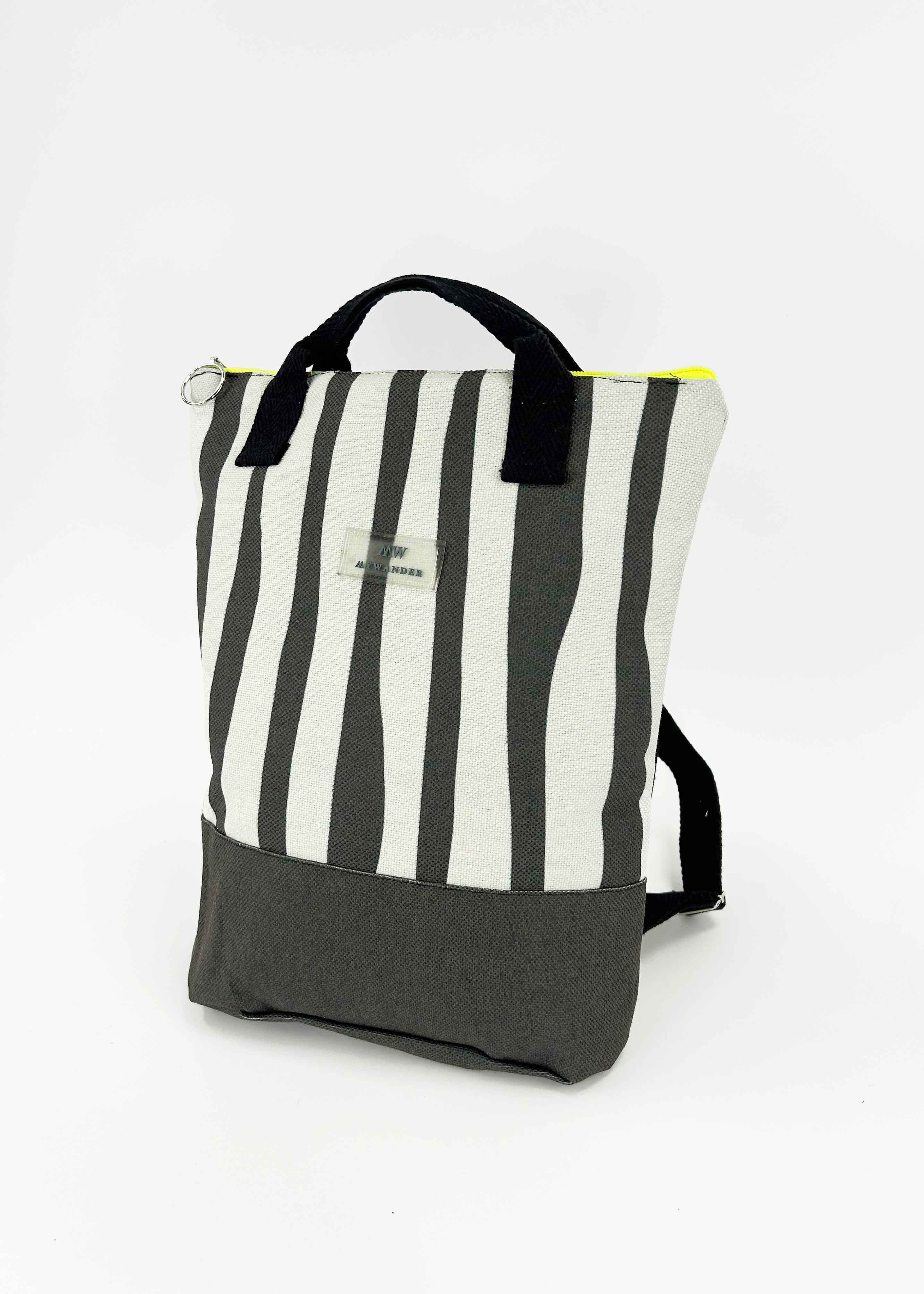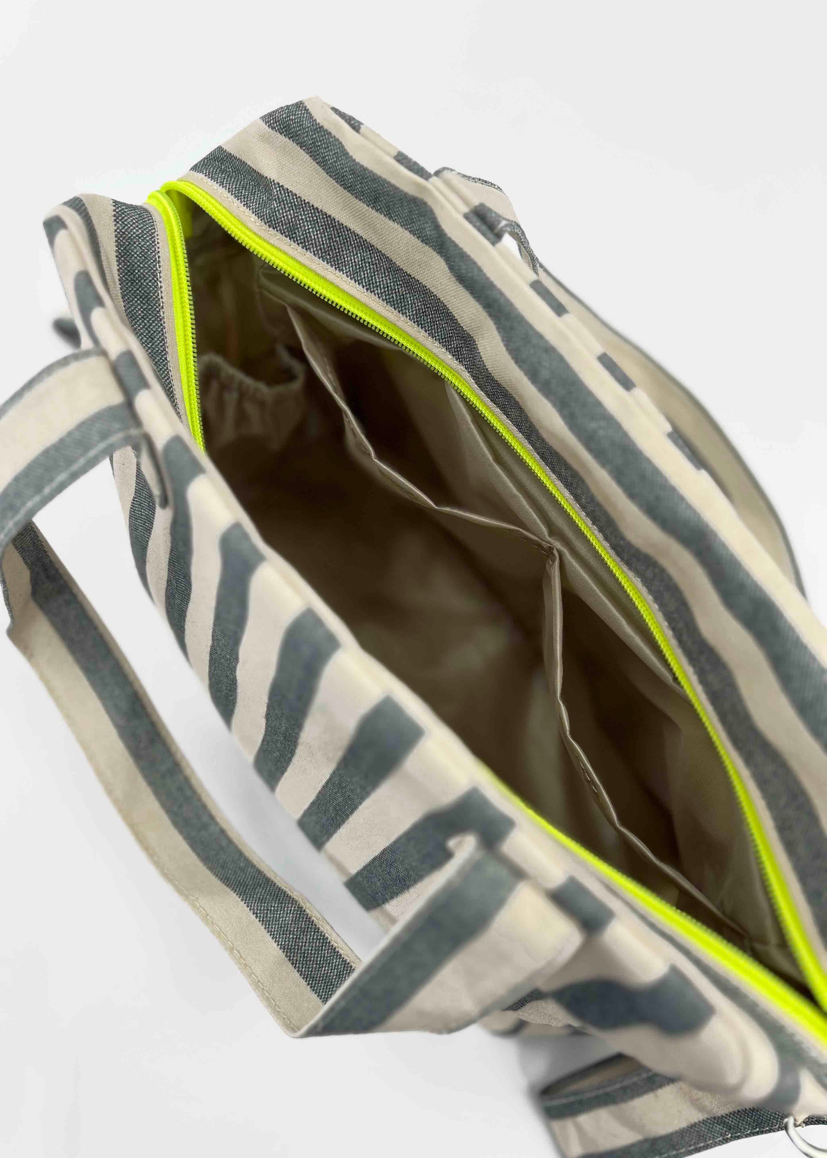Escolhemos este tecido rústico nas cores branco e bege com zíper amarelo para que combine com tudo e possa ser utilizado em qualquer tipo de plano. Desde uma viagem até modelos para uso diário.