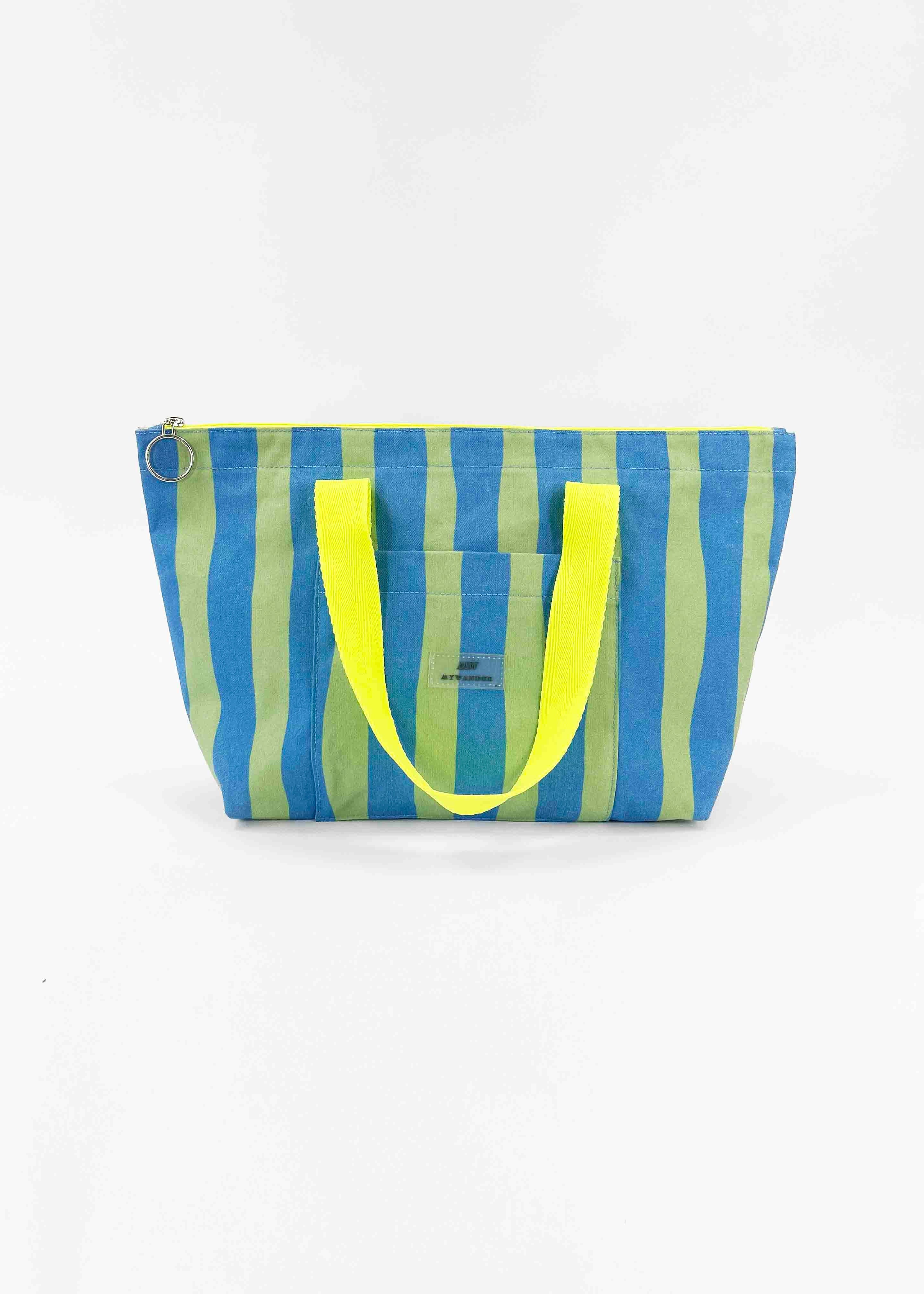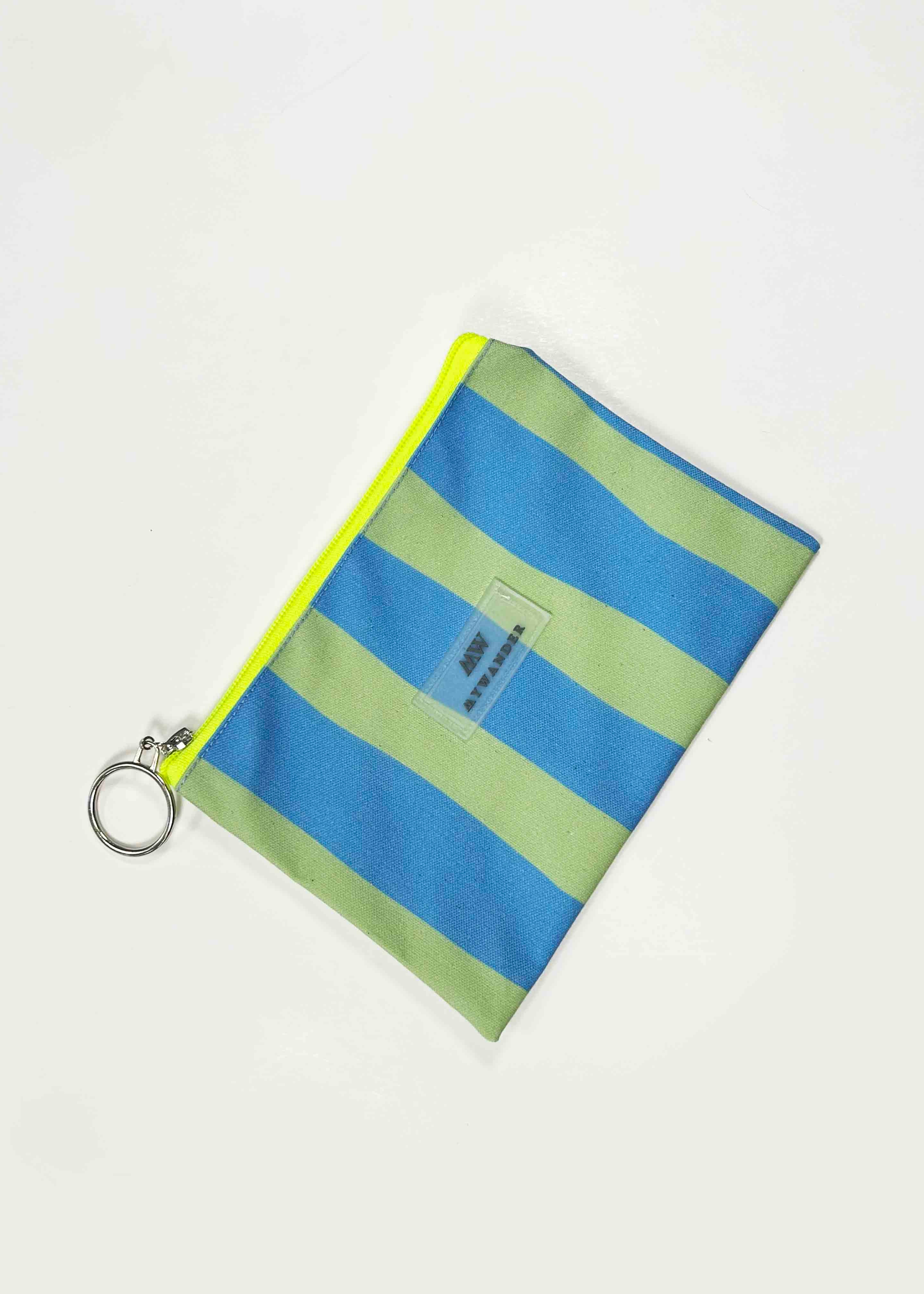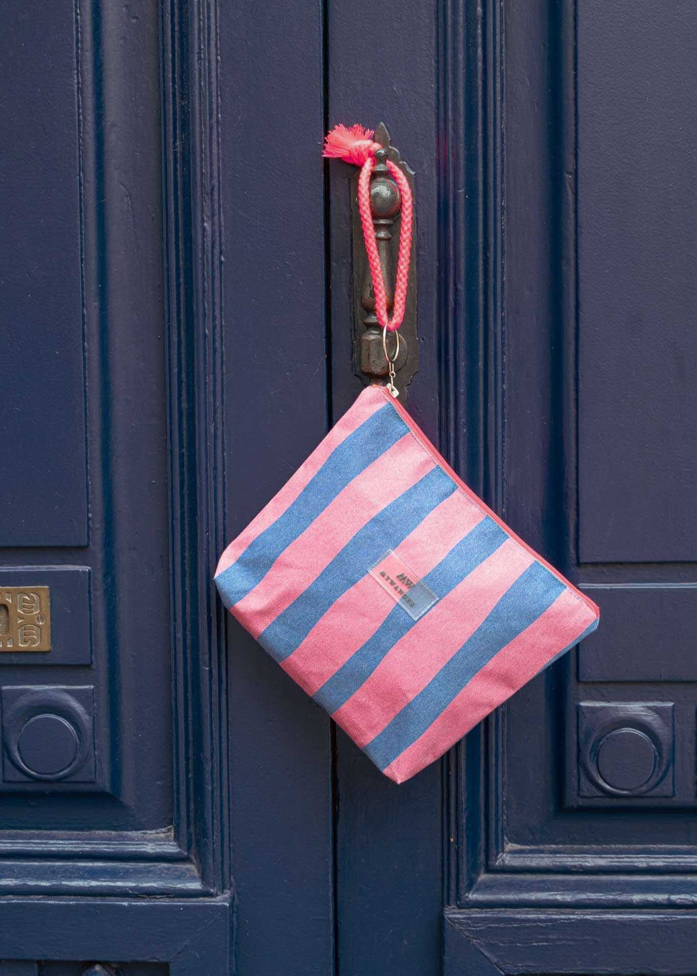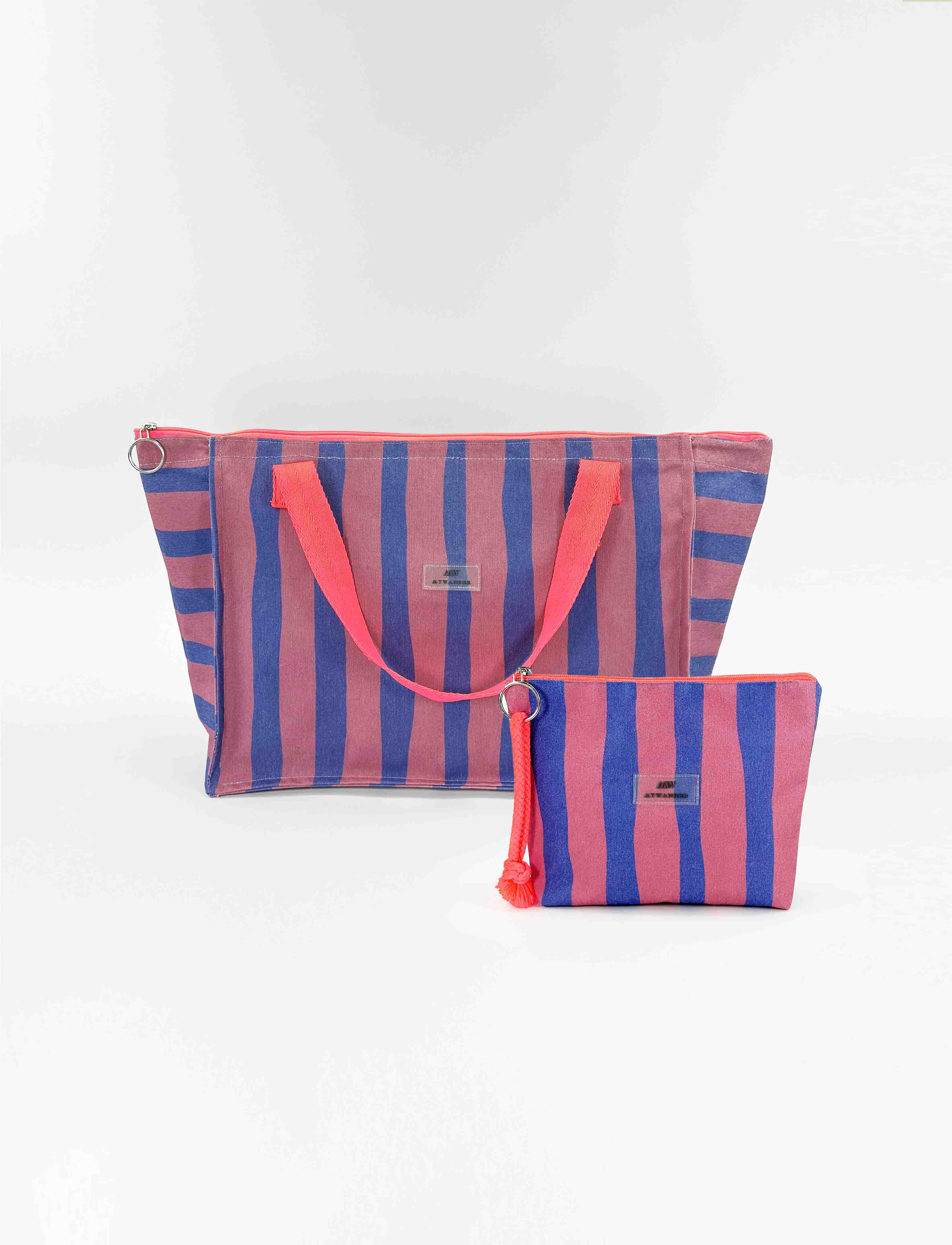 As listras Navy e Grey estão disponíveis em ambas as versões nos tamanhos Maxi, médio e nécessaire.