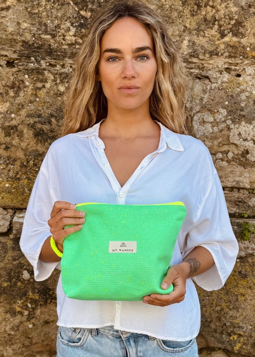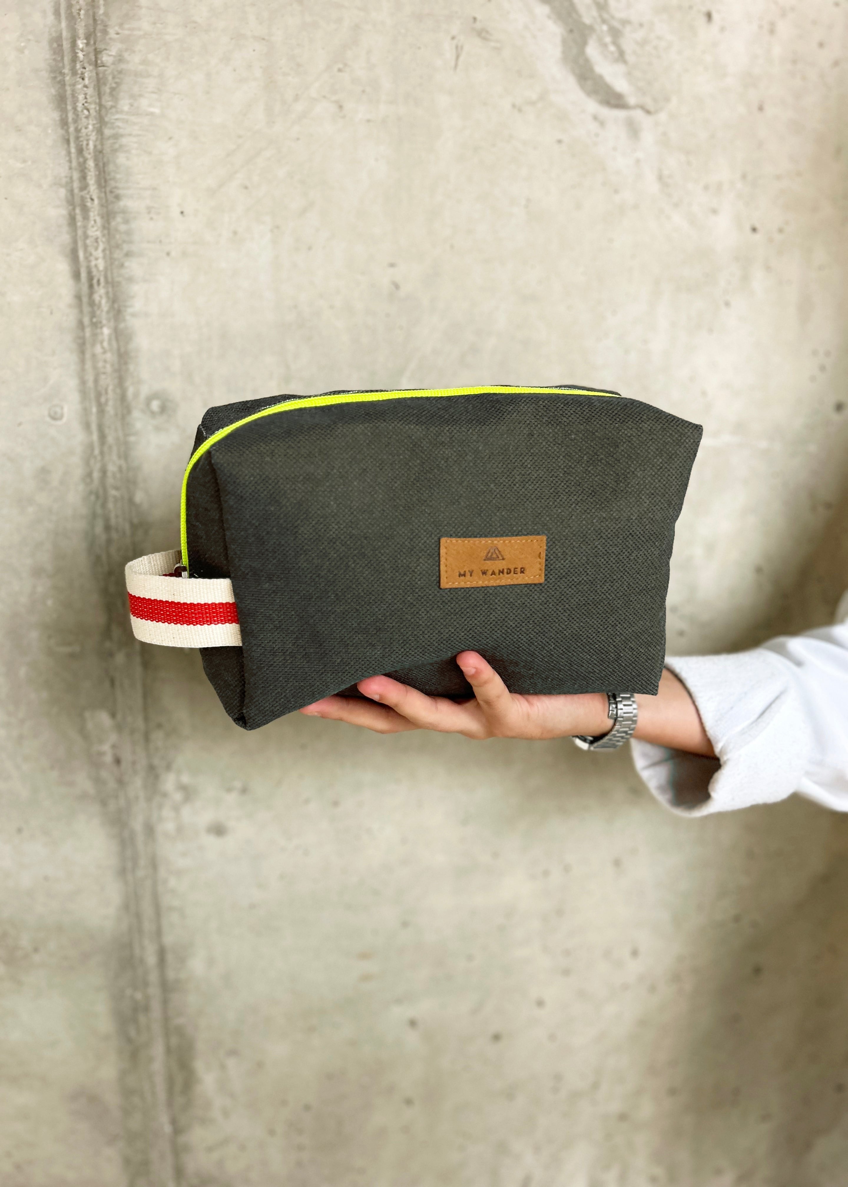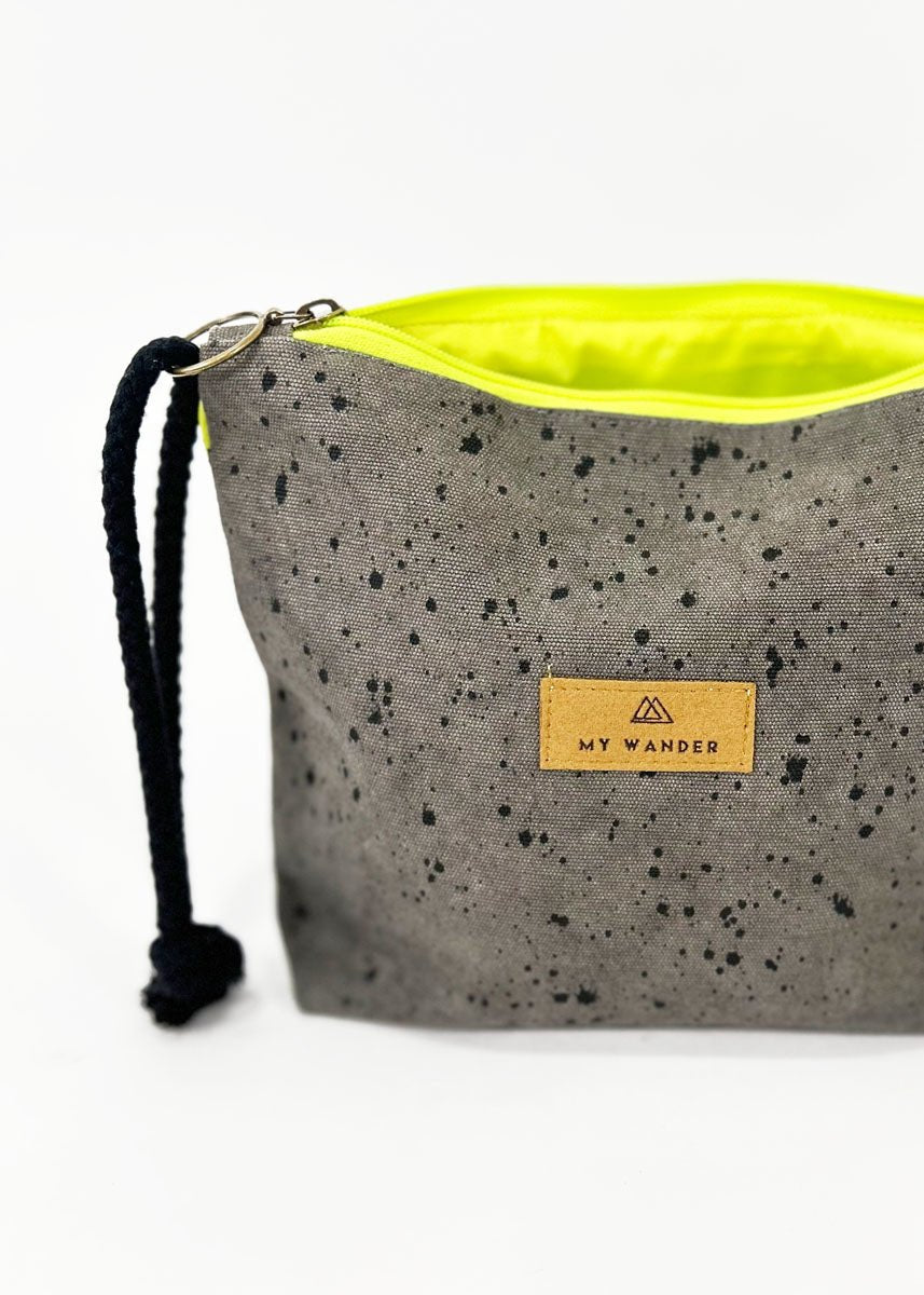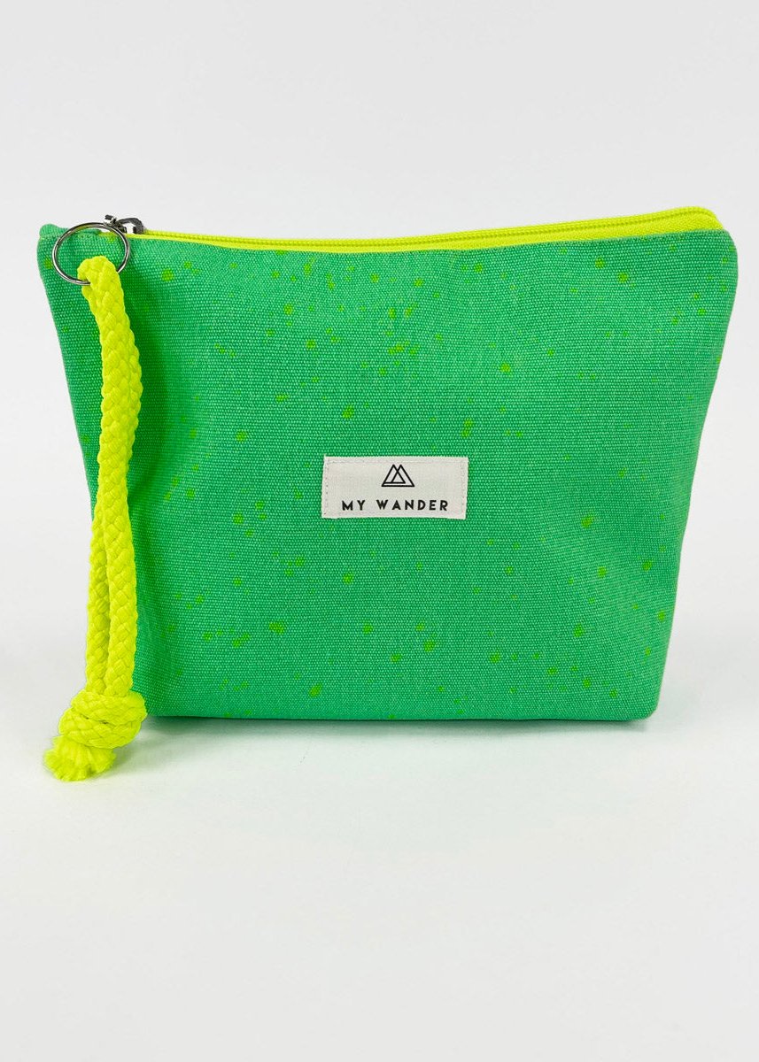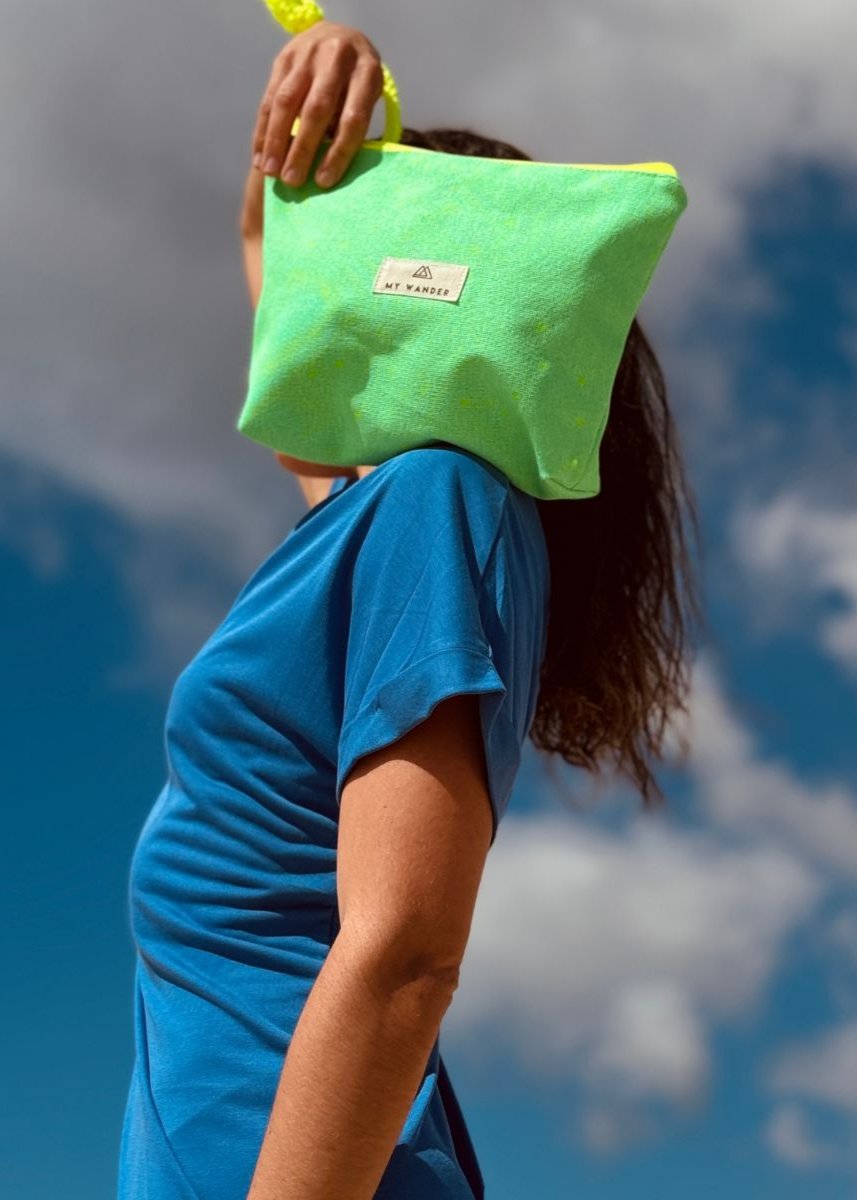 As nossas nécessaires são unissex, mas gostamos de ter estampas um pouco mais sóbrias ou lisas para ampliar :). Minhas bolsas de higiene unissex Wander têm formato retangular. Eles pesam tão pouco que podem ser dobrados com uma mão. Possuem detalhes em zíper neon e alça em algodão rústico. Por dentro, as bolsas de higiene unissex possuem forro de flúor para o caso de derramamento de líquido ou de necessidade de vestir um maiô molhado.