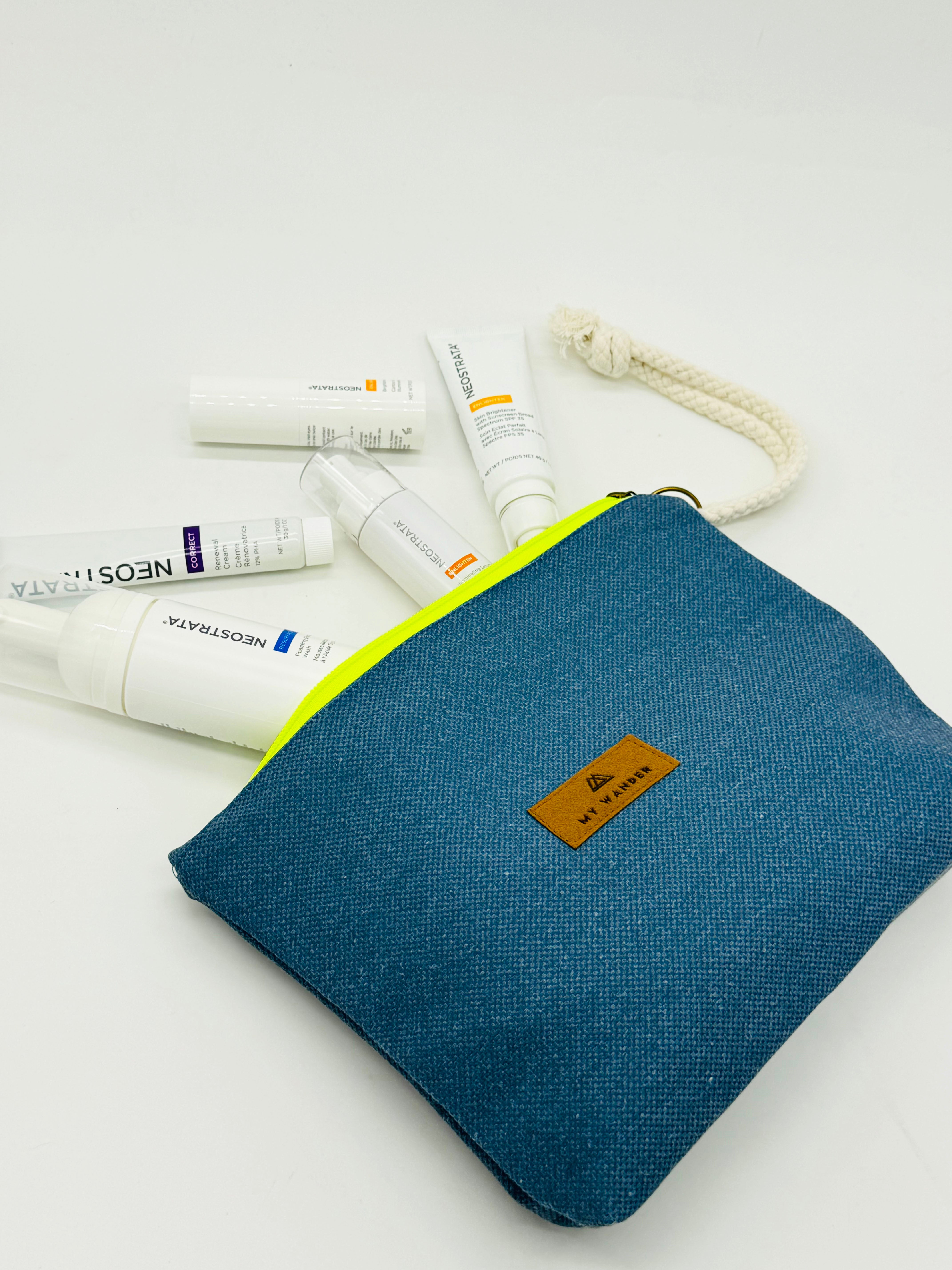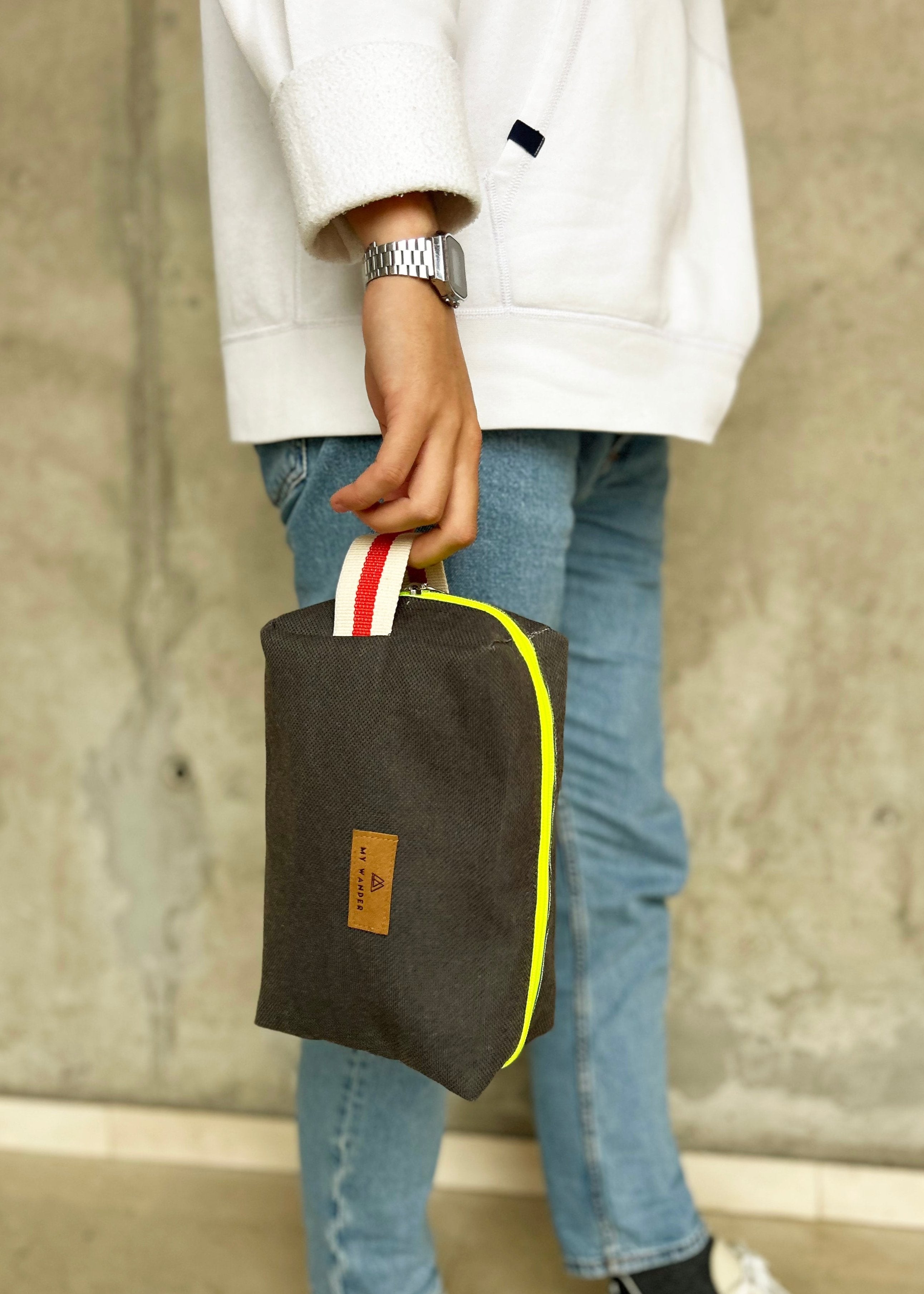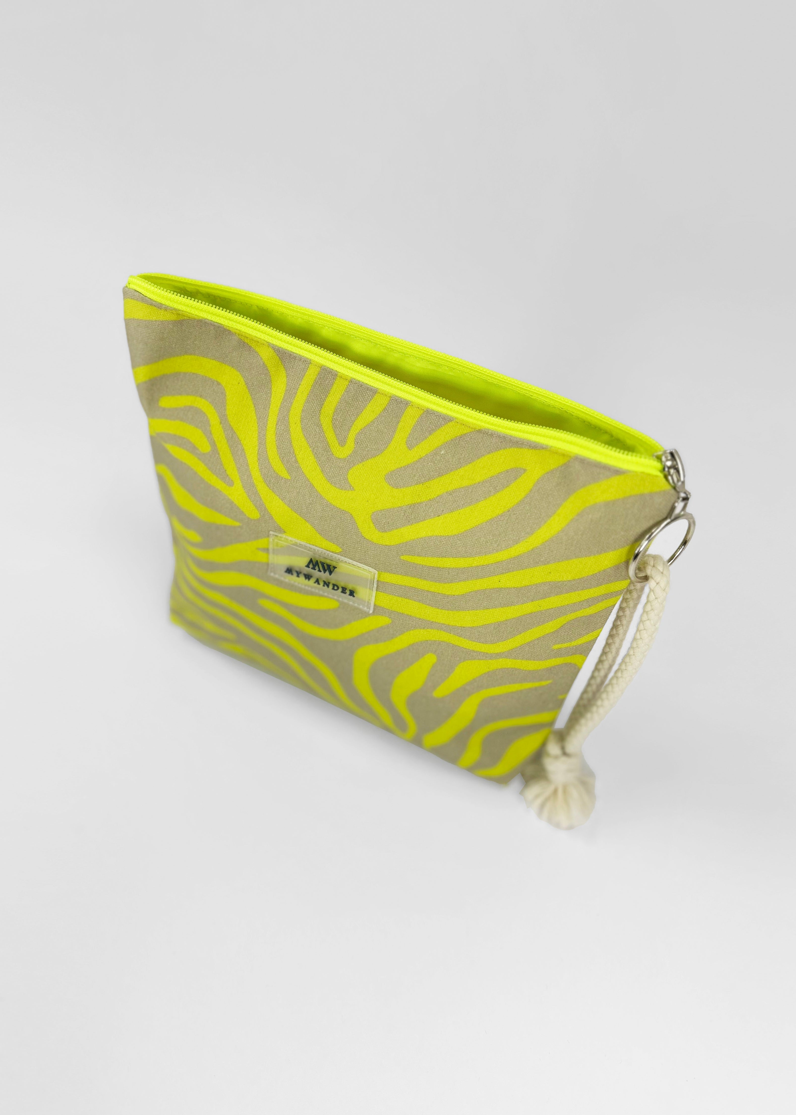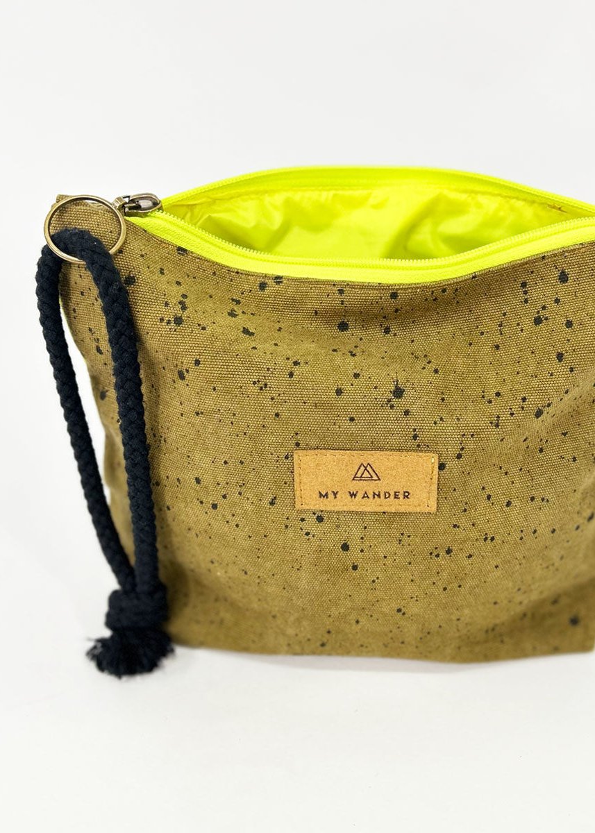 As nossas nécessaires são unissex, mas gostamos de ter estampas um pouco mais sóbrias ou lisas para ampliar :). Minhas bolsas de higiene unissex Wander têm formato retangular. Eles pesam tão pouco que podem ser dobrados com uma mão. Possuem detalhes em zíper neon e alça em algodão rústico. Por dentro, as bolsas de higiene unissex possuem forro de flúor para o caso de derramamento de líquido ou de necessidade de vestir um maiô molhado.